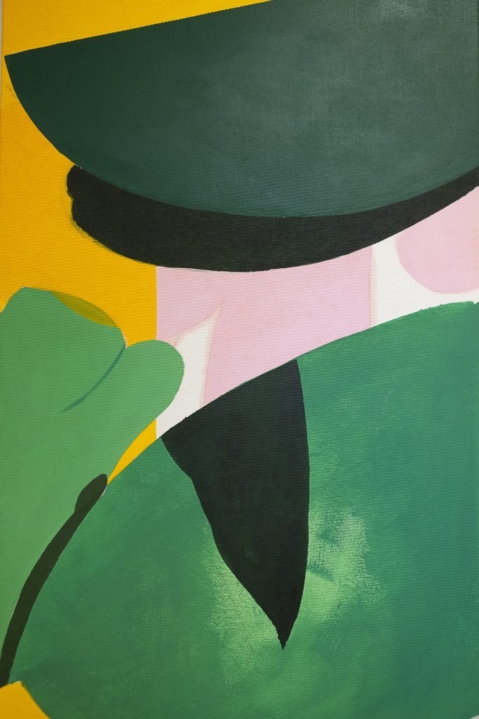 “I was observing the shades of green under the sunlight and the shadows formed as one leaf overlapped another. The organic shapes of the leaves often reminded me of the human figure, and their clean, simple forms.”