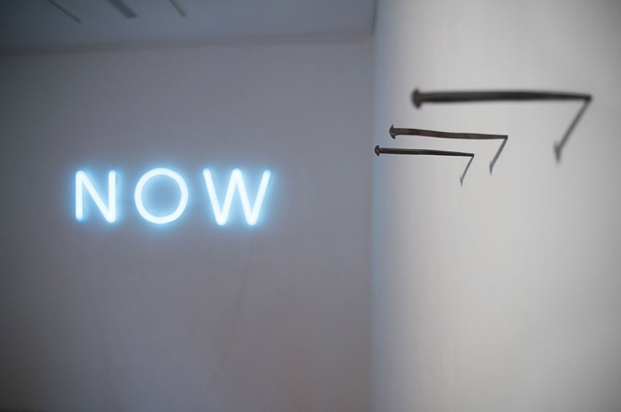 Through the composition of the works, a sanctity is assigned at the space while by leaving some of the areas empty, by treating white and black colors as a “situation” and by exploring the semantics of its media, the installation that the artist proposes is a study on the concept of time, the limits of (our) sensibility and how a vision of the human condition can be perpetuated today.